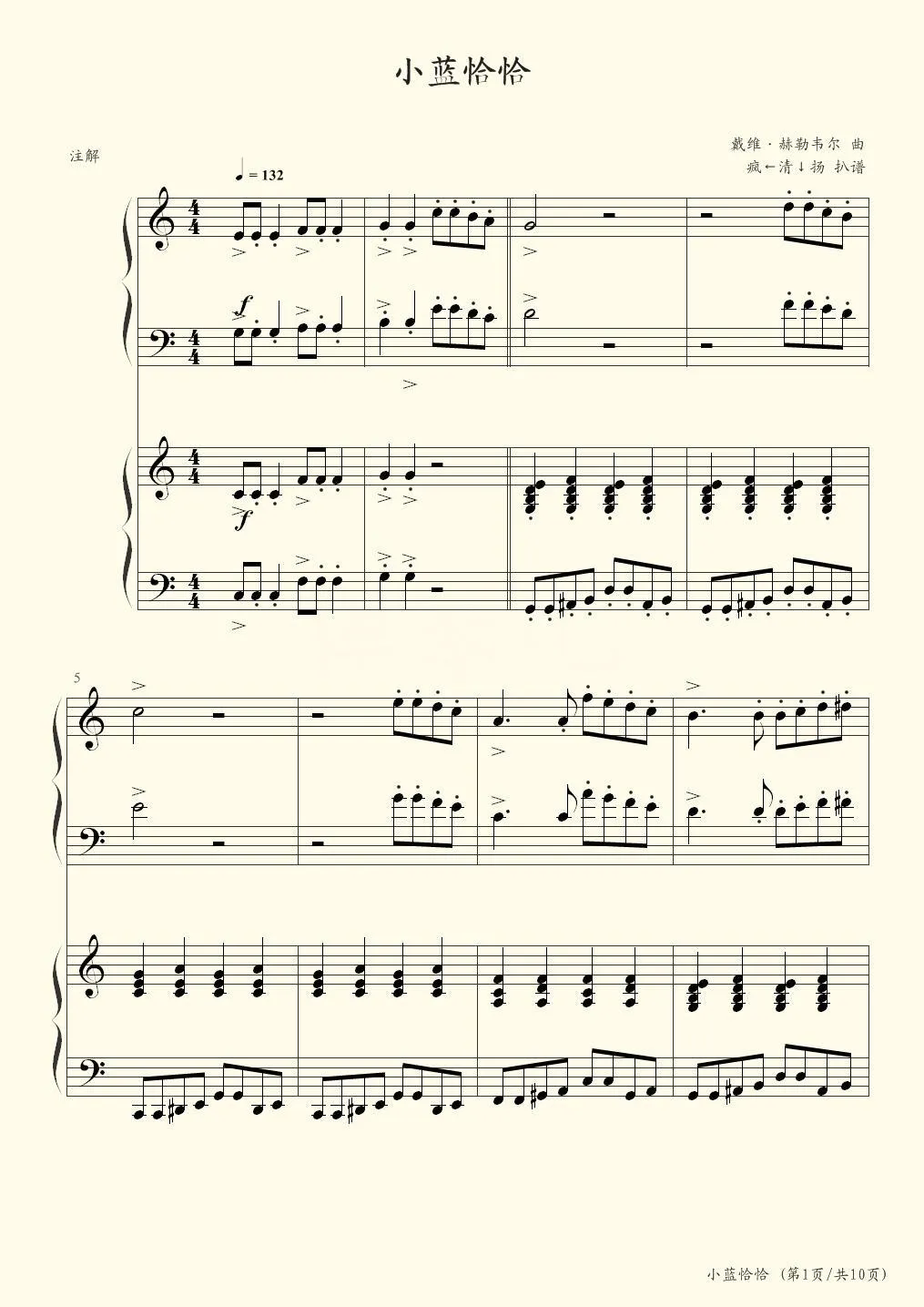 小蓝恰恰(Little Blue Cha-Cha 四手联弹)