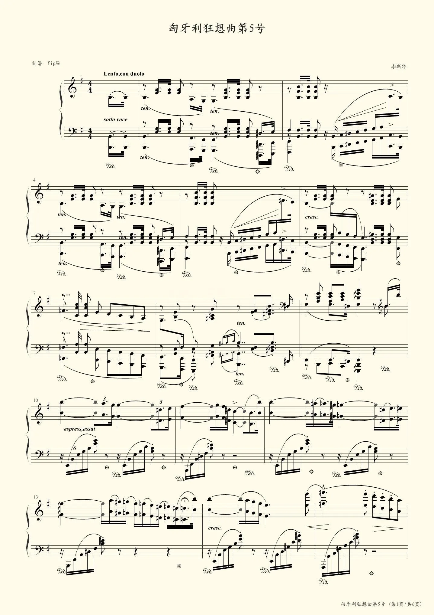匈牙利狂想曲第5号(深邃而美好的回忆与遐想,Yip骏版)