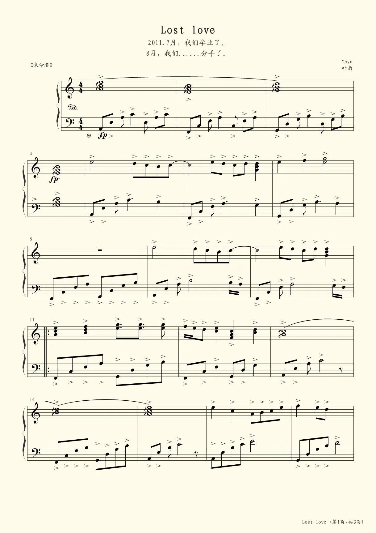 可惜没如果 (带指法)原版钢琴独奏
