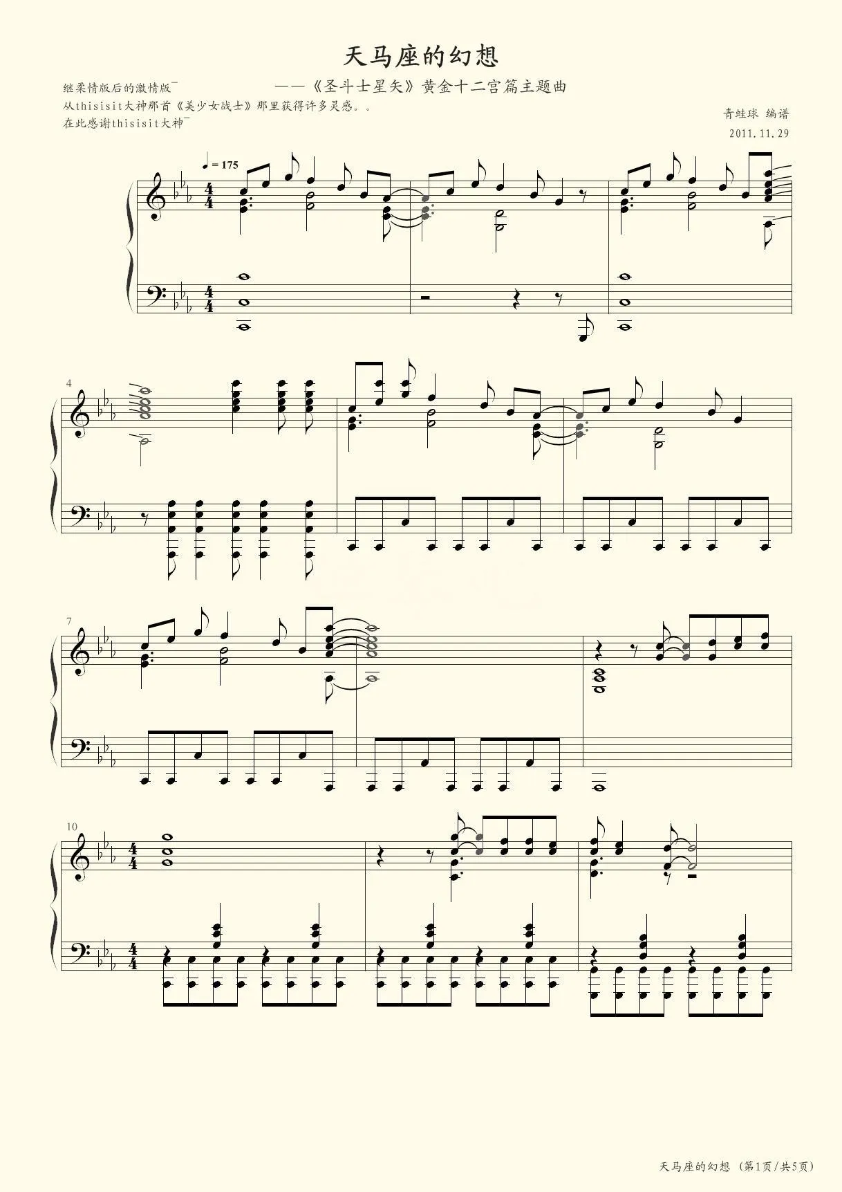 圣斗士星矢主题曲 四手联弹