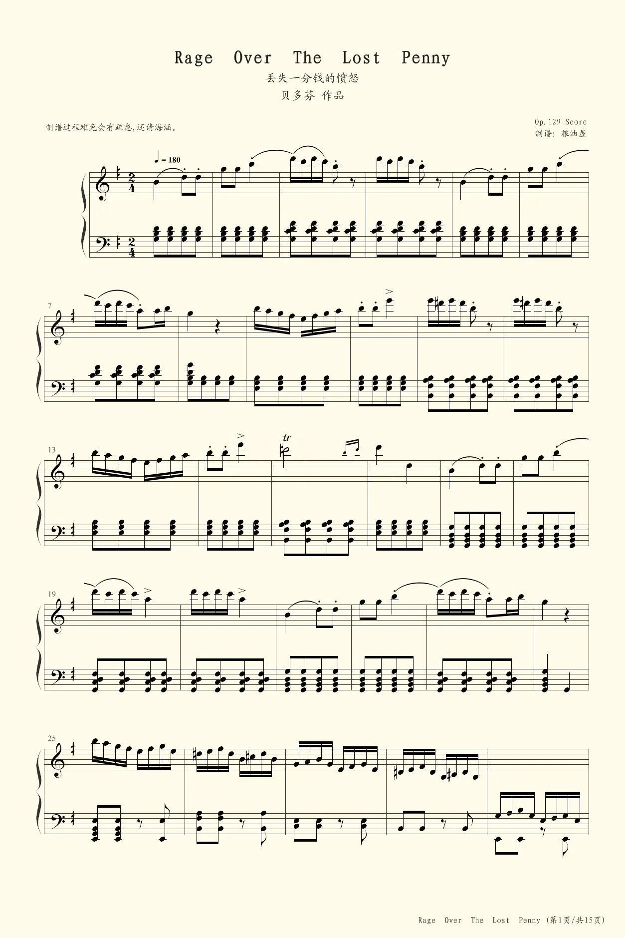 贝多芬:Rage Over The Lost Penny(丢失一分钱的愤怒)