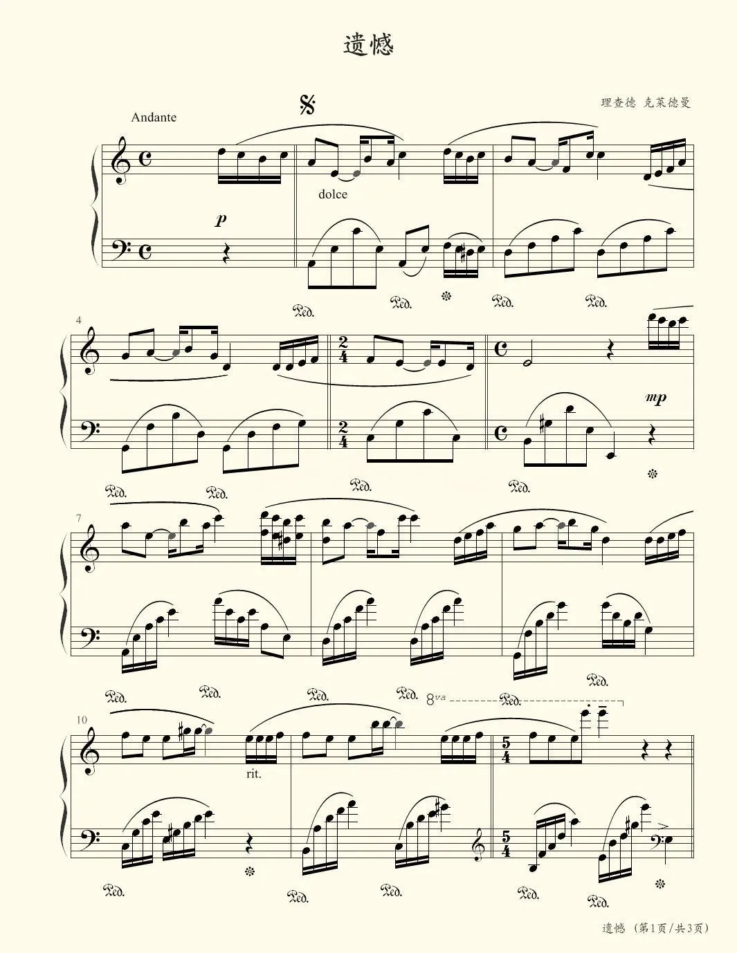 遗憾(理查德・克莱德曼,钢琴谱)