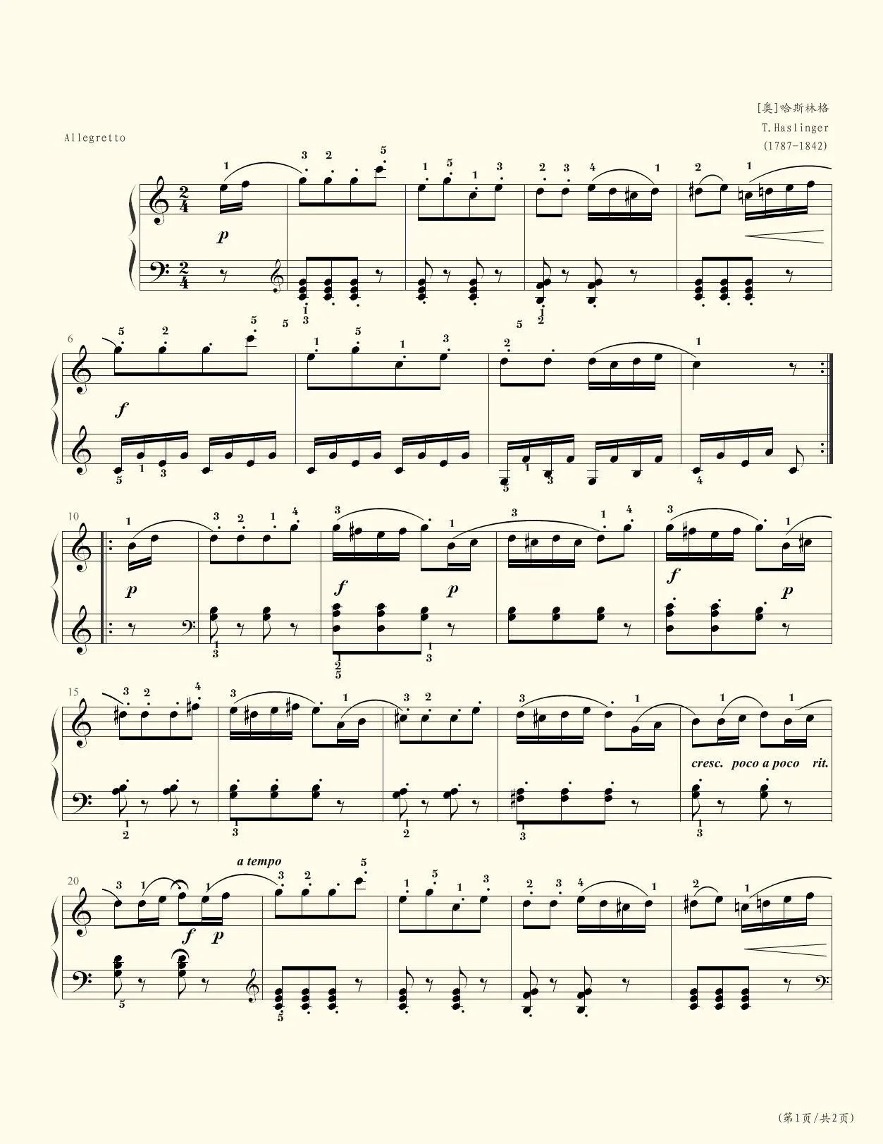40.第二级(规定曲目A组)C大调小奏鸣曲-中国音乐学院钢琴考级全国通用教材(第二套)