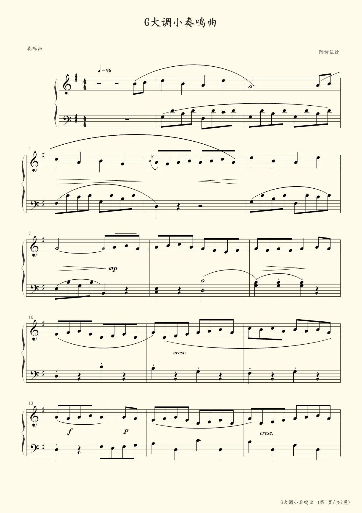 G大调小奏鸣曲第一乐章