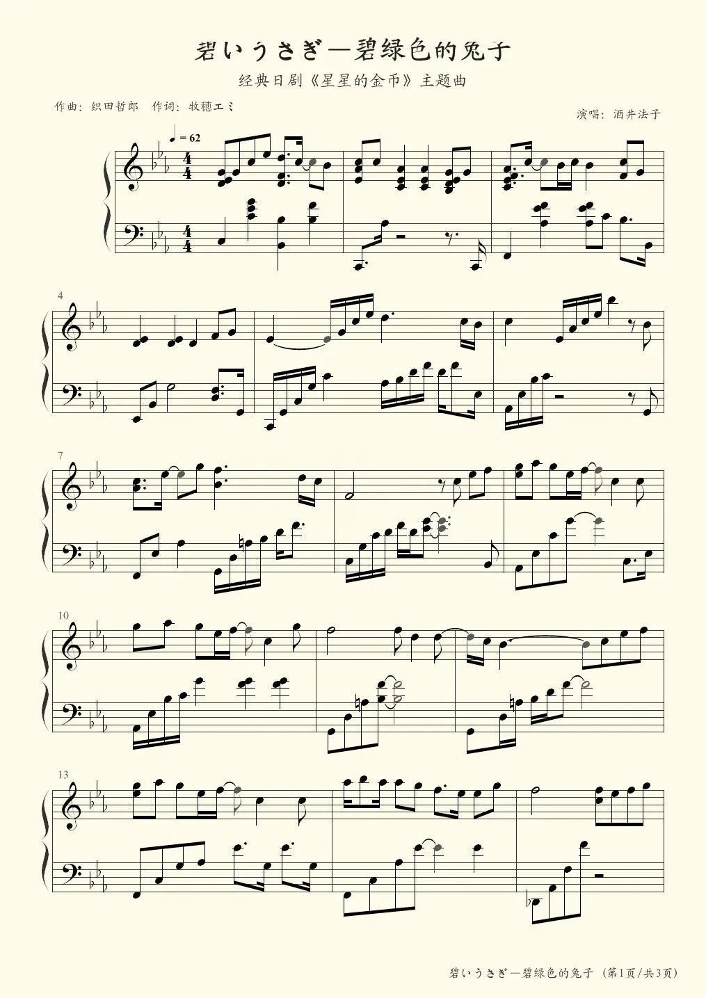 碧いうさぎ/碧绿色的兔子 ——日剧《星星的金币》主题曲