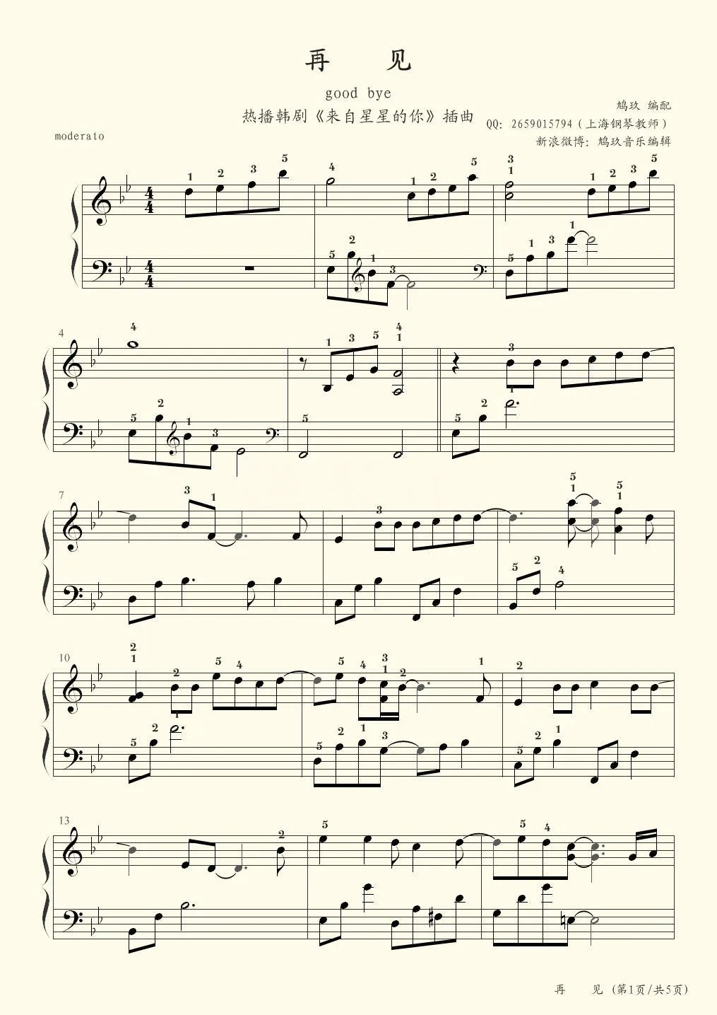 再见Good Bye(鸠玖简易钢琴谱)《来自星星的你》插曲
