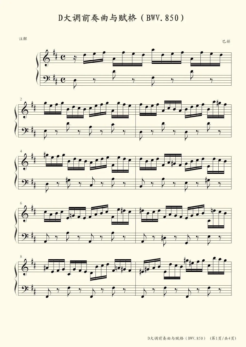 D大调前奏曲与赋格(BWV850)--前奏曲