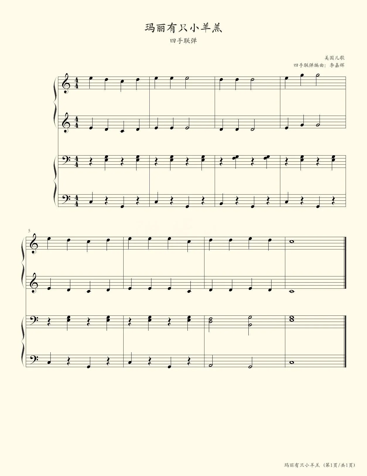 玛丽有只小羊羔(四手联弹)