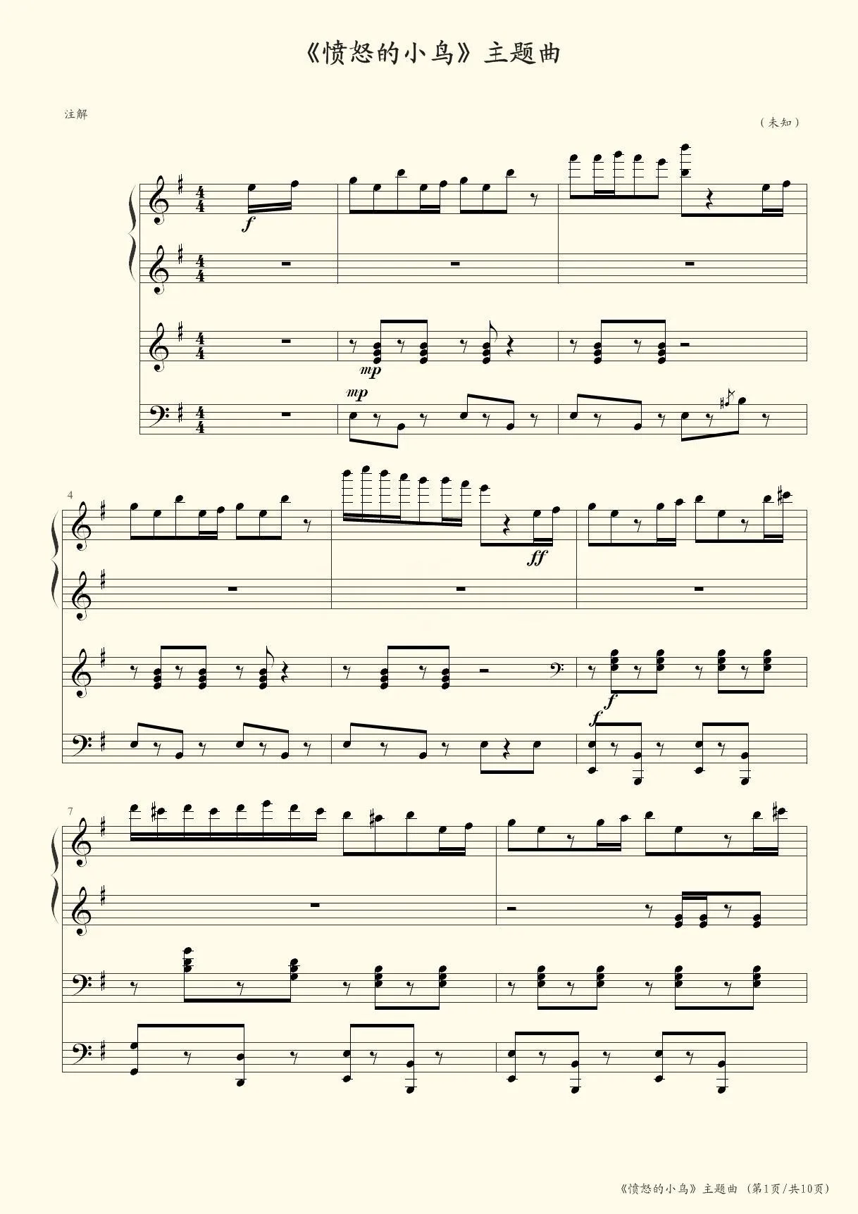 《愤怒的小鸟》主题曲(四手联弹)