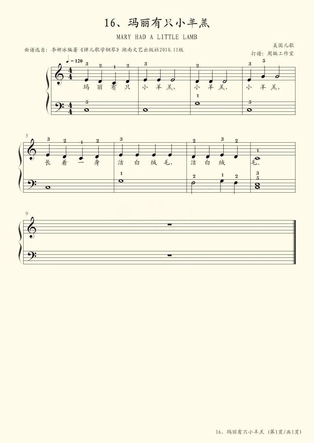 16、玛丽有只小羊羔[美国儿歌]-Z0116