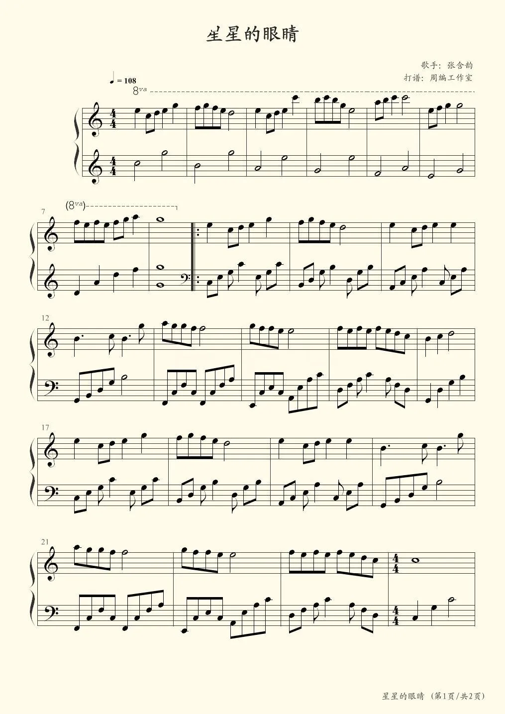 五线谱转双手简谱