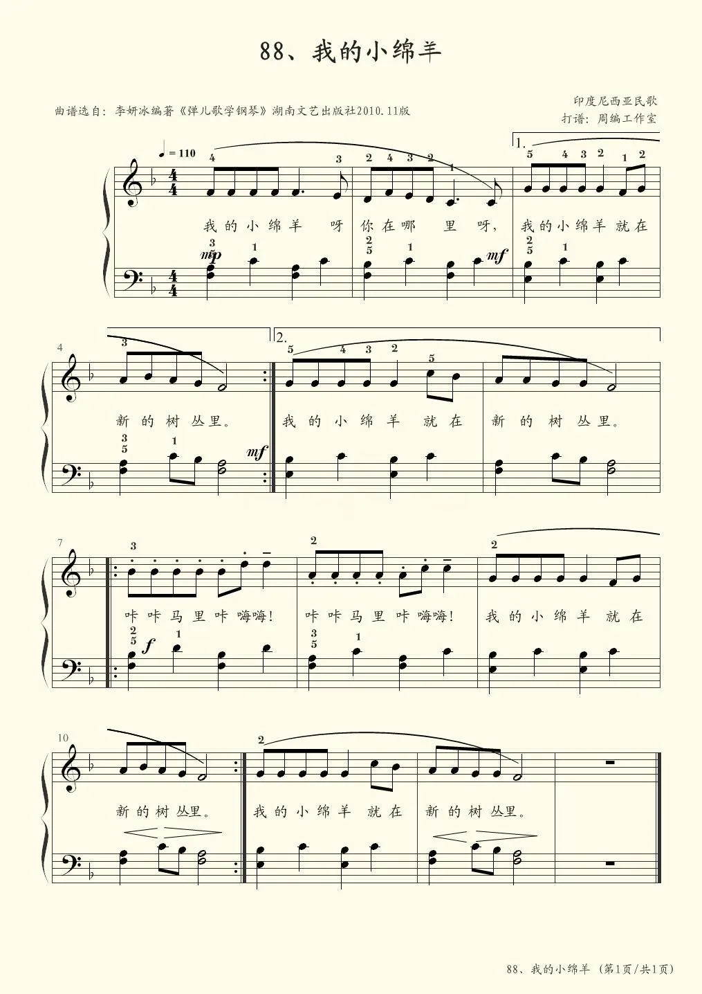 88、我的小绵羊[印度尼西亚民歌]-Z0188