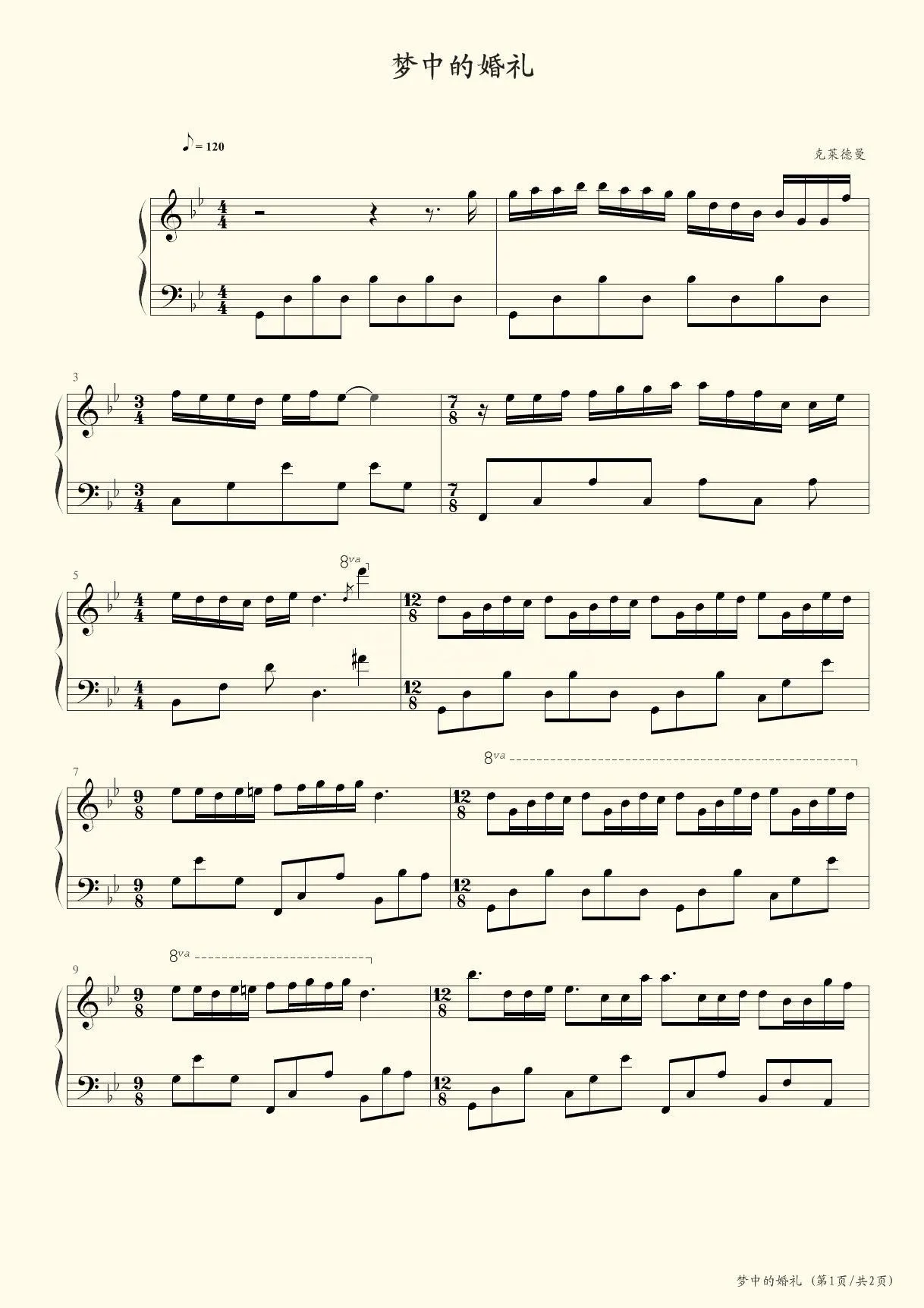 梦中的婚礼【简谱】(MARIAGE D'AMOUR 理查德克莱德曼)