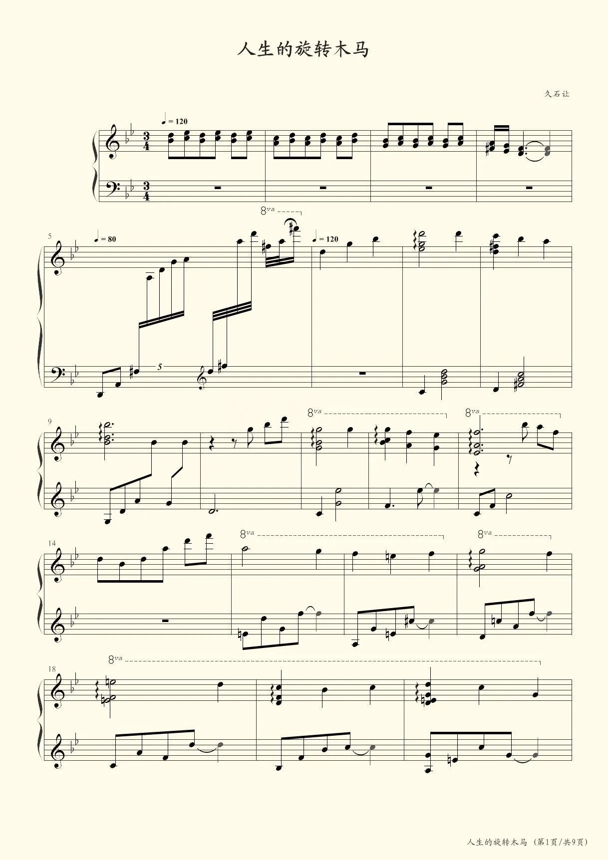 哈尔的移动城堡 人生的旋转木马 C调最简版