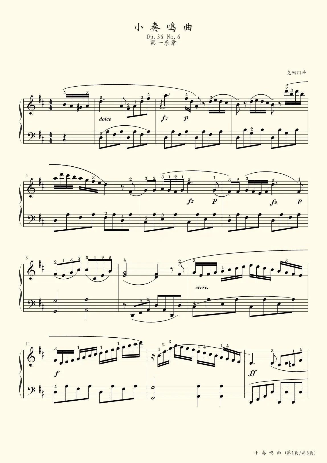 32_克列门蒂_小奏鸣曲_Op36-No6_D大调_第一乐章