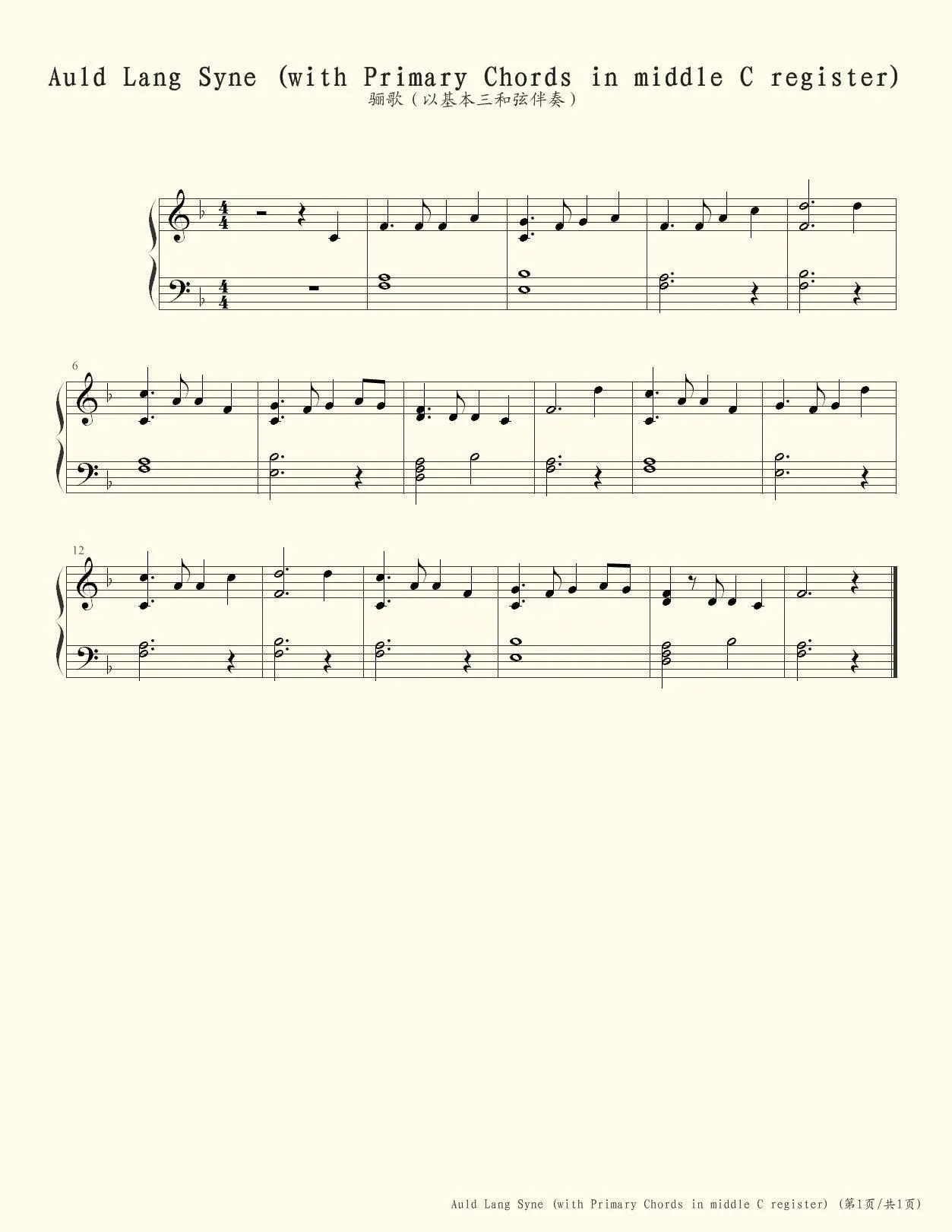 骊歌(Auld Lang Syne, 友谊地久天长)基本三和弦伴奏-谢明琪钢琴教室