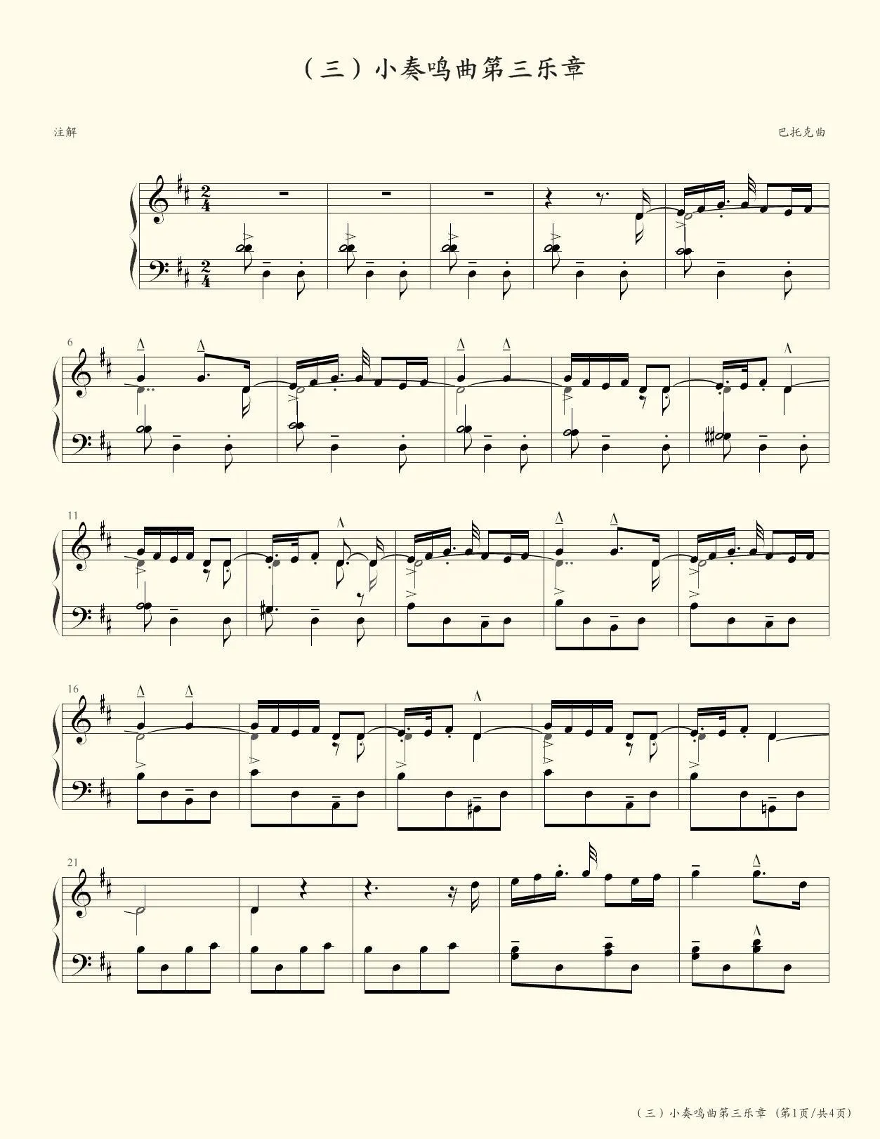 (三)小奏鸣曲第三乐章 巴托克曲