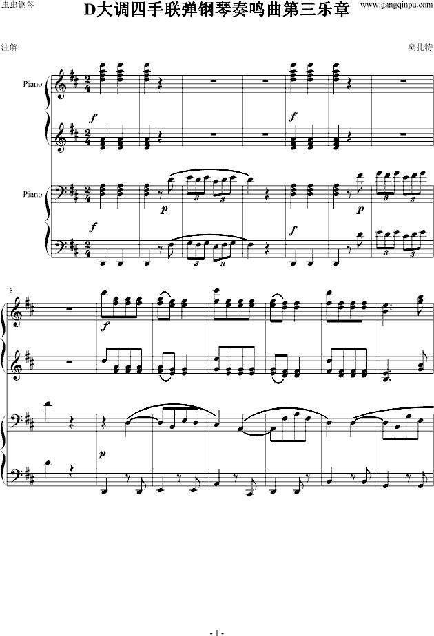 莫扎特D大调四手联弹钢琴奏鸣曲第三乐章