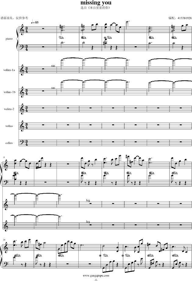 总谱-钢琴弦乐《来自星星的你》-《missing you》