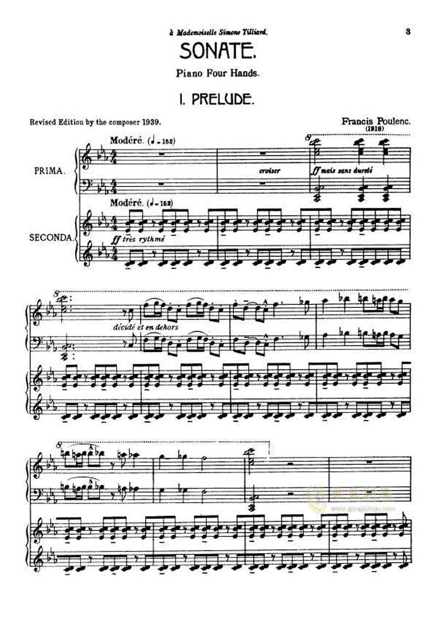普朗克 四手联弹奏鸣曲 第一乐章