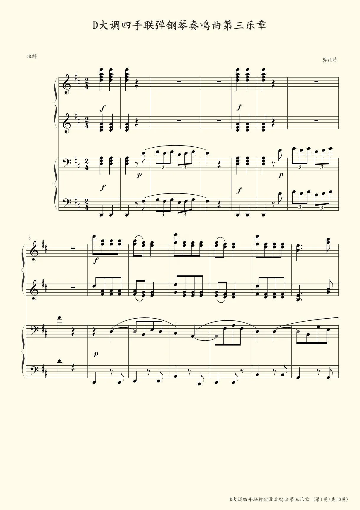 莫扎特D大调四手联弹钢琴奏鸣曲第三乐章