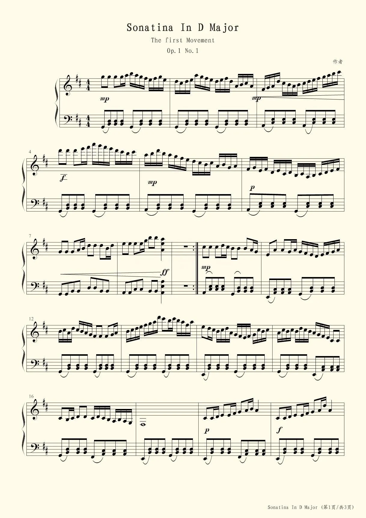 D大调小奏鸣曲第一乐章