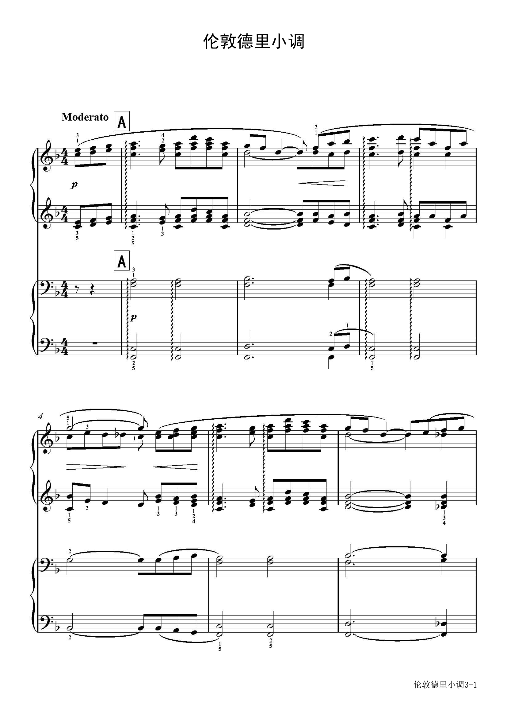 伦敦德里小调(四手联弹)