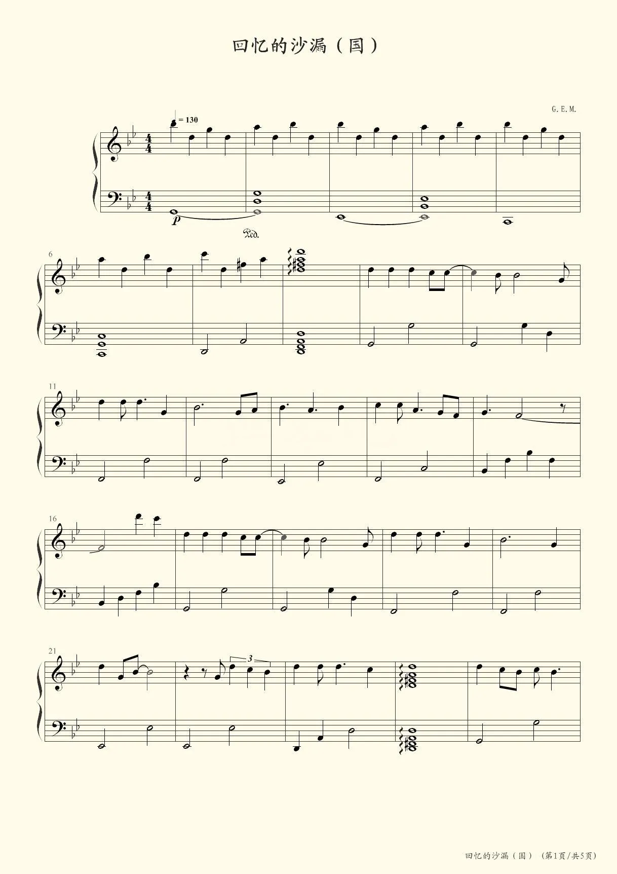 回忆的沙漏【双手简谱】G.E.M.邓紫棋回忆沙漏
